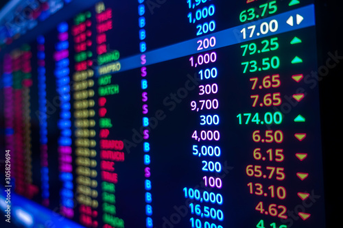 Stock market graph on screen. Ticker on monitor screen. Investing, Finance and Economic concept.