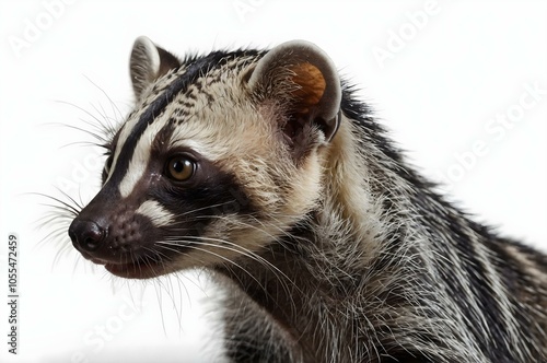civet, realistic, fur, spotted, animal, three-dimensional, white, background, slender, body, face, expressive, tail, model, wild, pattern, detailed, texture, isolated, mammal, wildlife, sleek, streamlined, exotic, closeup, calm, nature, felino, rendering, alert, creature, anatomy, unique, expression, portrait, wilderness, solitary, visual, design, eye, photo, studio shot