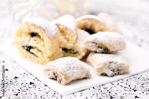 Stollen Bites on bright background. Soft focus. Close up.