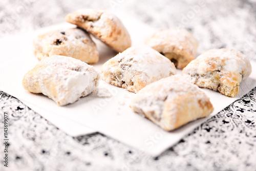 Stollen Bites on bright background. Soft focus. Close up.