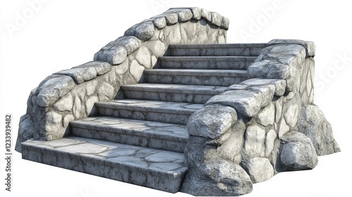 Stone stairs with a rustic design connecting different levels in an outdoor setting during daytime