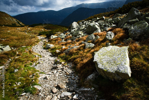 vale, hiking, slovakia, bright, beauty, fall, europa, foggy, dark, orange, morning, yellow, stone, natural, green, blue, beautiful, fog, road, scenic, rock, cloud, wild, tour tourism, travel, sky, tatra, view, park, summer, stone, infused, autumn, mountain, landscape, mountain, nature, path