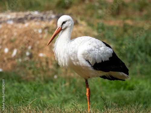 stork, bird, animal, white, nature, wildlife, beak, ciconia, grass, feather, game, black, green, zoo, red, fauna, white stork, meadow, nest, calculation, wing, birth, 1, standing
