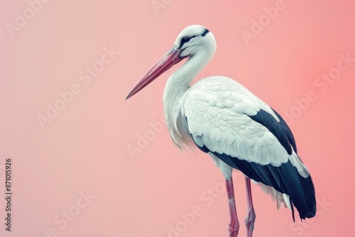 Stork, isolated on pastel background, stock photographic style