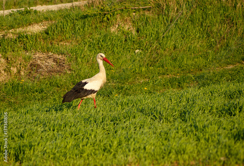 bird, stork, animal, field, nature, beak, white, grass, feather, green, wild, wildlife, wing, summer, ciconia, walking, meadow, spring, beautiful, red, portrait, black, fauna, environment, background, natural, closeup, neck, park