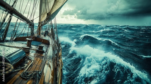 sailing, ship, storm, ocean, wave, deck, sea, twilight, water, nautical, travel, adventure, coastline, marin, shipbuilding, voyage, cloud, wooden, vessel, maritime, wind, horizon, nature, exploration, calmness, scenic, turbulent, atmosphere, historic, pirate, cruising, weather, line, view, sunlight, stormy, coastal, fisherman, life, watercraft, sky, landscape, breeze