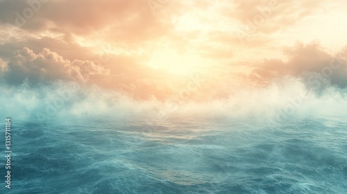 sunrise, sea, storm, cloud, fog, ocean, wave, dramatic, sky, misty, sunset, seascape, stormy, cloudscape, horizon, water, nature, landscape, oceanic, huge, turbulent, rough, surface, waterfall, dark, light, colours, texture, soft, gold, atmospheric, peaceful, calm, immensity, expansive, blue, orange, yellow, beige, grey, white, calmness, foggy, turbulence, distant
