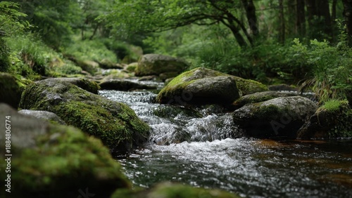 stream, water, rock, moss, forest, nature, river, landscape, outdoors, scenic, green, tranquil, peaceful, environment, creek, flowing water, fresh water, wood, natural, rocky, water feature, cascade, stone, lush, serene, ecological, fresh, vibrant, clean, clear, wilderness