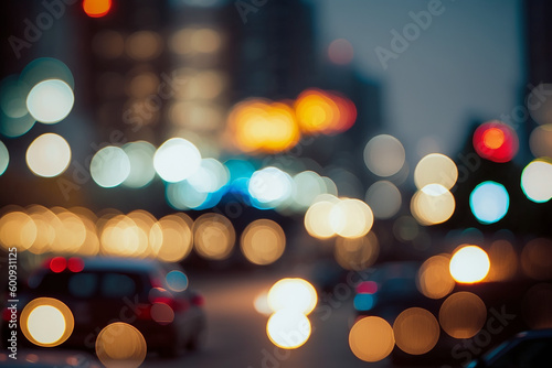 street night bokeh background with large spots of lights, Generative AI