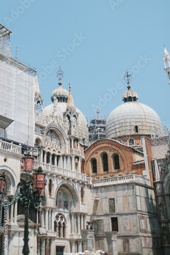 facades, cathedral, ancient, architecture, beautiful, blue, building, chapels, church, cross, day, daylight, destination, detail, door, element, entrance, italy, lantern, nobody, old, roof, sky, stone, street, sun, sunlight, sunny, tour tourism, travel, urban, venice, vertical, view, window, no people, touristic