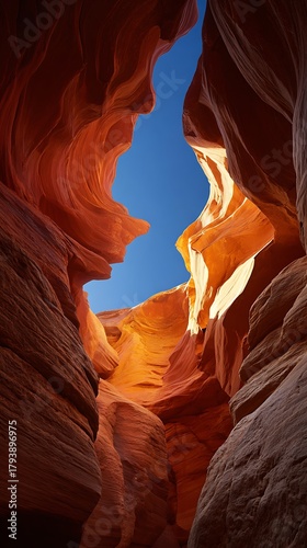 Striated Antelope Canyon Walls Framing Blue Sky, Arizona Nature Photography
