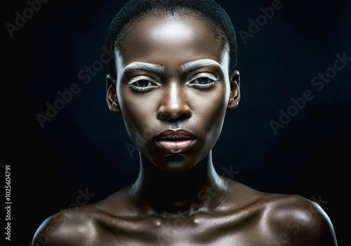 Striking portrait of a woman with artistic makeup and illuminating lighting technique