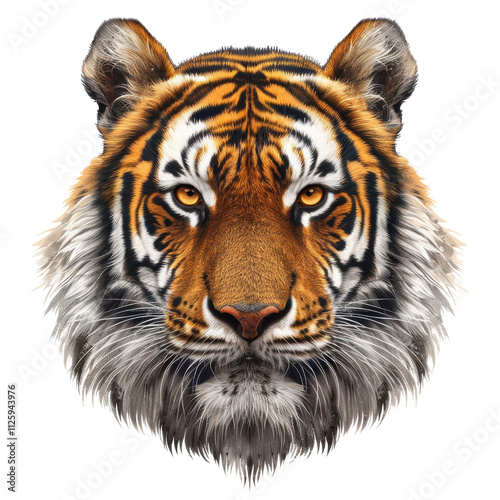 tiger, animal, wildlife, portrait, face, fur, powerful, majestic, fierce, nature, animal portrait, wild, orange, eye, stripes, beauty, detail, hunter, predator, graphic, illustration, realism, bold, captivating, striking, sharpened, sharp, craftsmanship, artistry, intricate, textured, magnificent, vibrant, stunning, gorgeous