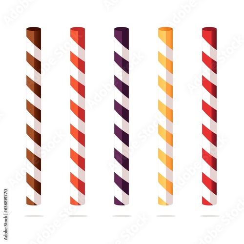 Striped straw for drinking. Flat style. A paper tube for drinks. Drinking tube for cafes, menus, packaging design and decor.