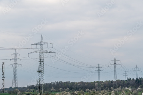 electricity, tree, energy, field, high voltage, infrastructure, cable, power plant, countryside, duct, pylon, stream, pylon, technology
