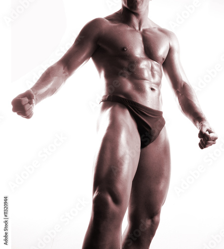 strong muscle man in sepia on white background