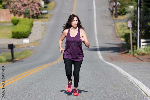running, healthy, lifestyle, woman, uphill, person, fitness, exercise, physical exercise, runner, jogger, jogging, strong, fit, female, activewear, athlete, training, determined, determination, mature, 40s
