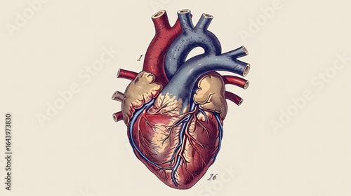 Structural Clarity: Comprehensive Medical Diagram of Heart Structure – Detailed Cross-Sections of Atria and Ventricles, Clear Labeling of Septum, Myocardium, and Pericardium, plus Major Vessels