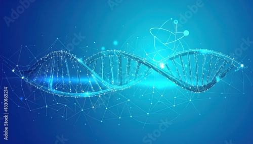 Structure molecule and communication Dna, atom, neurons. Science concept for your design. Connected lines with dots