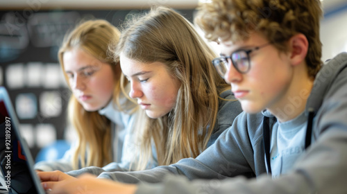 student, classroom, laptop, studying, education, school, learning, teamwork, sharpened, technology, academic, youth, concentration, peer, workspace, digital, adolescence, group, work, quiet, environment, high, collaboration, homework, modern, screen, time, serious, study, teenage, project, winter, interactive, creative, thinking, problem solving, communication, multitask