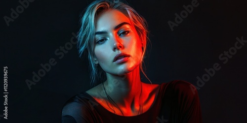 Studio shot of a model posing with dramatic lighting and a black backdrop