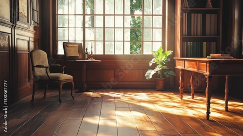 Study room photo, wood floor, elegant.
