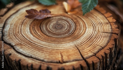 Stump of oak tree - cross-section of the trunk displaying annual rings.