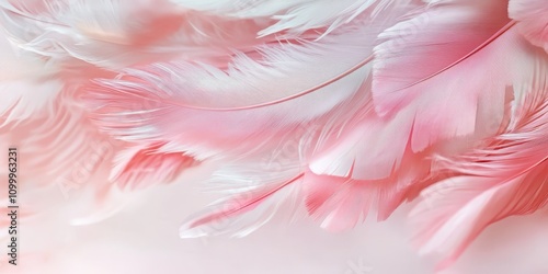 Stunning abstract composition featuring colorful white and pink feathers on a soft white background, showcasing intricate pink feather texture and patterns in an elegant pink setting.