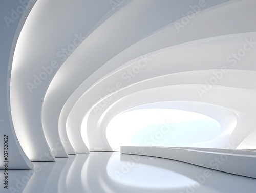 architecture, modern, interior, white, space, abstract, minimalist, geometric, design, three-dimensional, render, futuristic, minimal, clean, bright, contemporary, curve, line, pattern, structure, elegant, dynamic, concept, empty, studio