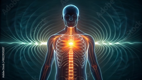 anatomy, human, body, skeleton, energy, core, vibrant, glowing, medicals, science, health, health care, biology, medicine, internal, organ, system, anatomical, illustration, futuristic, technology, research, diagnosis, treatment, x-ray, scan, wellness, vitality, strength, power, well-being, male, man, chest, innovation, design, abstract