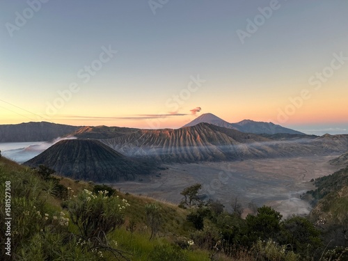 Stunning Beautiful of Sunrise at the top of Mount Bromo at East Java, Java Island, Indonesia, Southeast Asia, Asia
