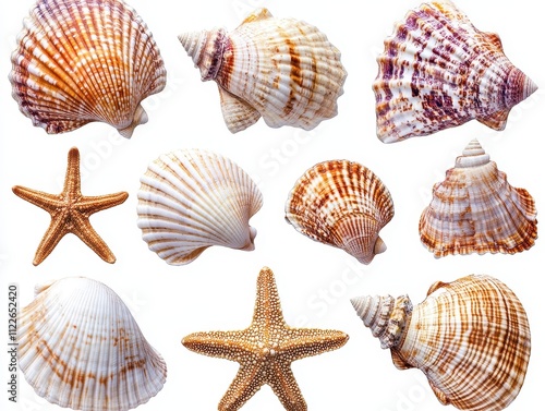 Stunning Collection of Seashells and Starfish Isolated on White Background High-Resolution Stock Photo for Design Projects