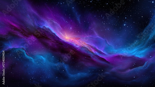Stunning cosmic nebula with vibrant purple and blue hues, showcasing stellar formations and distant stars