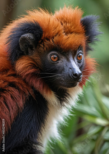 Stunning Cute Red Ruffed Lemur Scouting Thru The Forest 300 PPI High Resolution Image