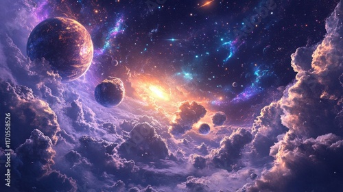 Stunning display of meteor showers illuminating the cosmic landscape at night in a vibrant galaxy