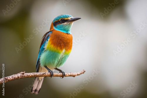 Stunning European Roller Perched on a Tree Branch, Showcasing Its Vivid Blue and Brown Plumage in a Serene Natural Setting, Vibrant Wallpaper