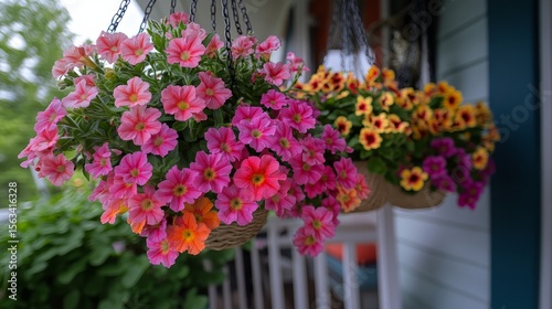 Stunning Outdoor Floral Displays Colorful Hanging Baskets Overflowing with Vibrant Summer Blooms