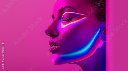 Stunning portrait of a woman showcasing colorful abstract makeup in fashion art style