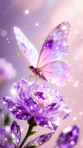 Stunning Purple Butterfly on Sparkling Flower with Gemstone Details