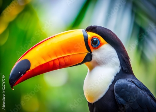 Stunning Silhouette of Toco Toucan with Vibrant Bill on White Background - Rio Negro, Pantanal, Brazil