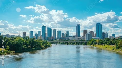 city, skyline, urban, river, architecture, building, nature, landscape, cloud, water, outdoors, bright, daylight, city landscape, greenery, tree, summer, modern, residential, vibrant, tranquil, tranquil scene, horizon, scenic, beautiful, panoramic, sunny, leisure, activity, travel, exploration, river bank, community, infrastructure, metropolitan, picturesque, waterfront, lifestyle, destination, serene, view