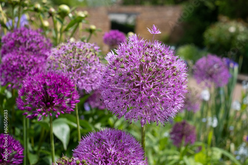 Stunning spherical purple allium flowers at the walled garden in the historical Eastcote House gardens, Eastcote Hillingdon, UK.