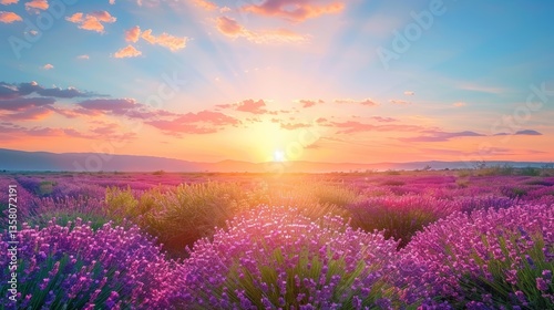 Stunning sunset over lavender fields in provence, france a must see for travel photography