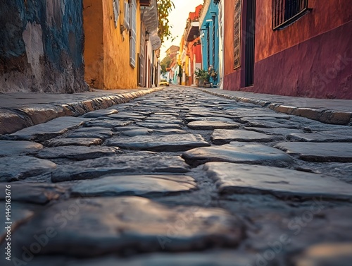 Stunning Urban Exploration on a Narrow Cobblestone Street with Colorful Buildings: Discover Old Town Charm and City Getaway in a Vibrant, Historical Neighborhood
