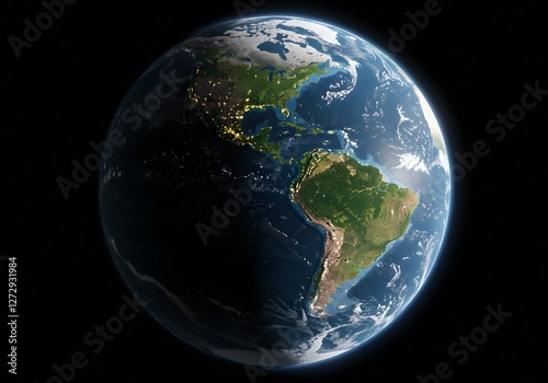 earth, planet, globe, space, earth, cosmos, universe, night, day, twilight, america, america, north, south, central, land, water, ocean, cloud, atmosphere, light, city, continent, geography, map, satellite, view, perspective, photo, image, digital, rendering, three-dimensional, model, blue, green, brown, dark, bright, illuminated, texture
