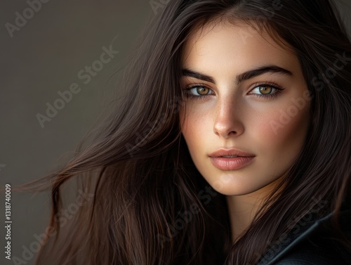 woman, portrait, beauty, model, hair, face, eye, girl, female, long hair, brown hair, make-up, skin, elegant, fashion, style, cosmetic, glamour, gorgeous, attractive, beautiful, sensual, confident, healthy, natural, expression, gaze, look, sophisticated, chic, modern, lifestyle, head shot, closeup, brunette, feminine, pretty, charming, alluring, captivating, serene