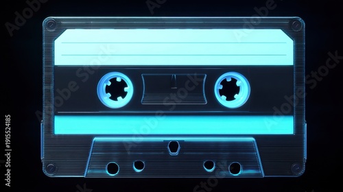 Stylish Audio Cassette Design with Modern Blue Glow and Classic Elements for Retro Aesthetic