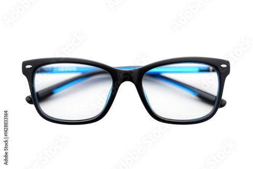 Stylish black frame eyeglasses eyewear fashion accessory close up view on transparent background