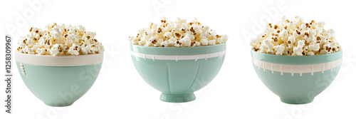 Stylish bowls filled with freshly popped popcorn for a movie night on transparent background
