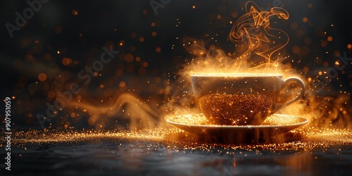 Stylish Dark Background Banner with Coffee Cup and Steam